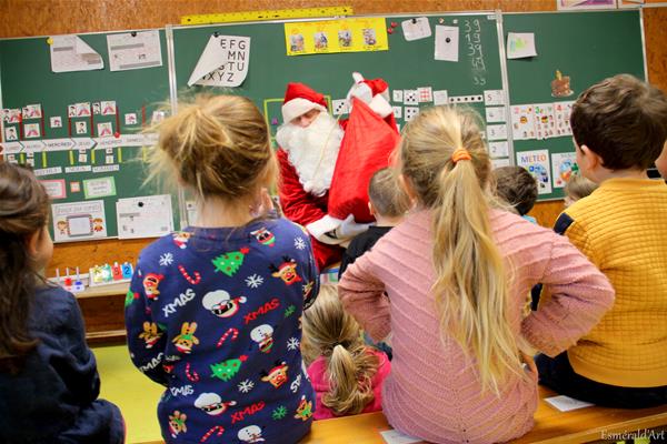 Ce vendredi 16 décembre, les enfants ont eu la surprise de voir le Père Noël passer dans leurs classes !
