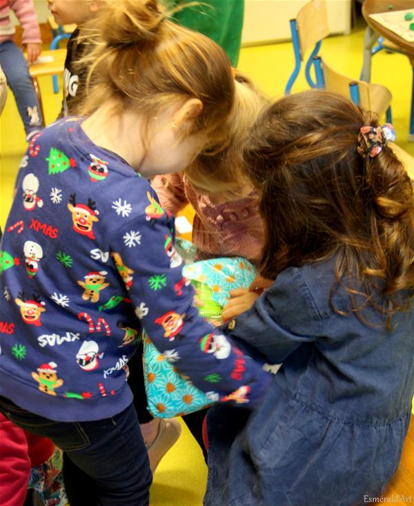 Les yeux ont brillé surtout chez les plus petits, mais les grands n’étaient pas en reste devant les présents de la liste de la maîtresse ou du maître pour eux !
