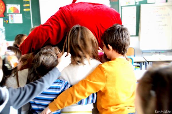Il était accompagné par ses lutins qui apportaient les friandises pour leur classe.